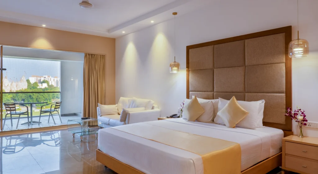 Experience comfort wrapped in elegance. Our spacious rooms and suites are designed for relaxation, blending modern luxury with warm hospitality — the perfect retreat for families, couples, and business travelers alike.